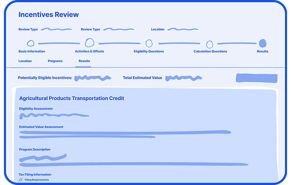 Answer guided questions to identify relevant incentives, assess eligibility, and estimate values.